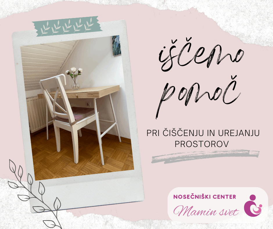 Zato iščemo žensko ali dekle, ki bi redno čistila in urejala naše prostore v Nosečniškem centru Mamin svet na Potočnikovi 8 v Ljubljani. Delo bi potekalo enkrat na teden, plačilo po dogovoru.